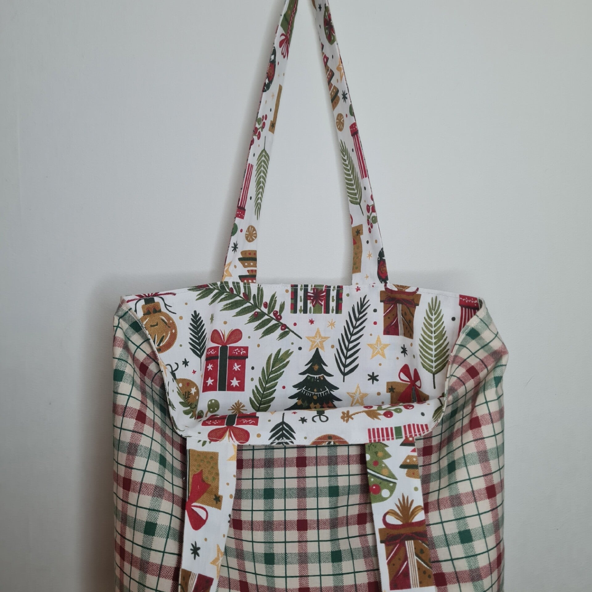 Ce sac réversible fait main a été pensé comme une promenade entre deux univers festifs, à choisir selon l’humeur du jour 🎁🤍